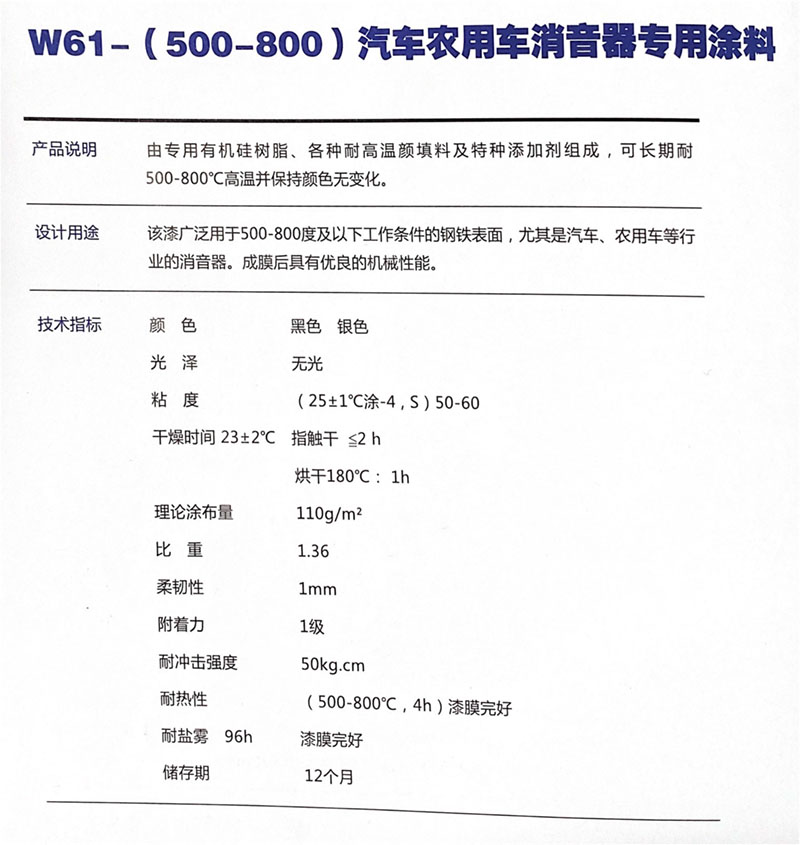 W61-(500-800)汽車農用車消音器專用耐高溫涂料